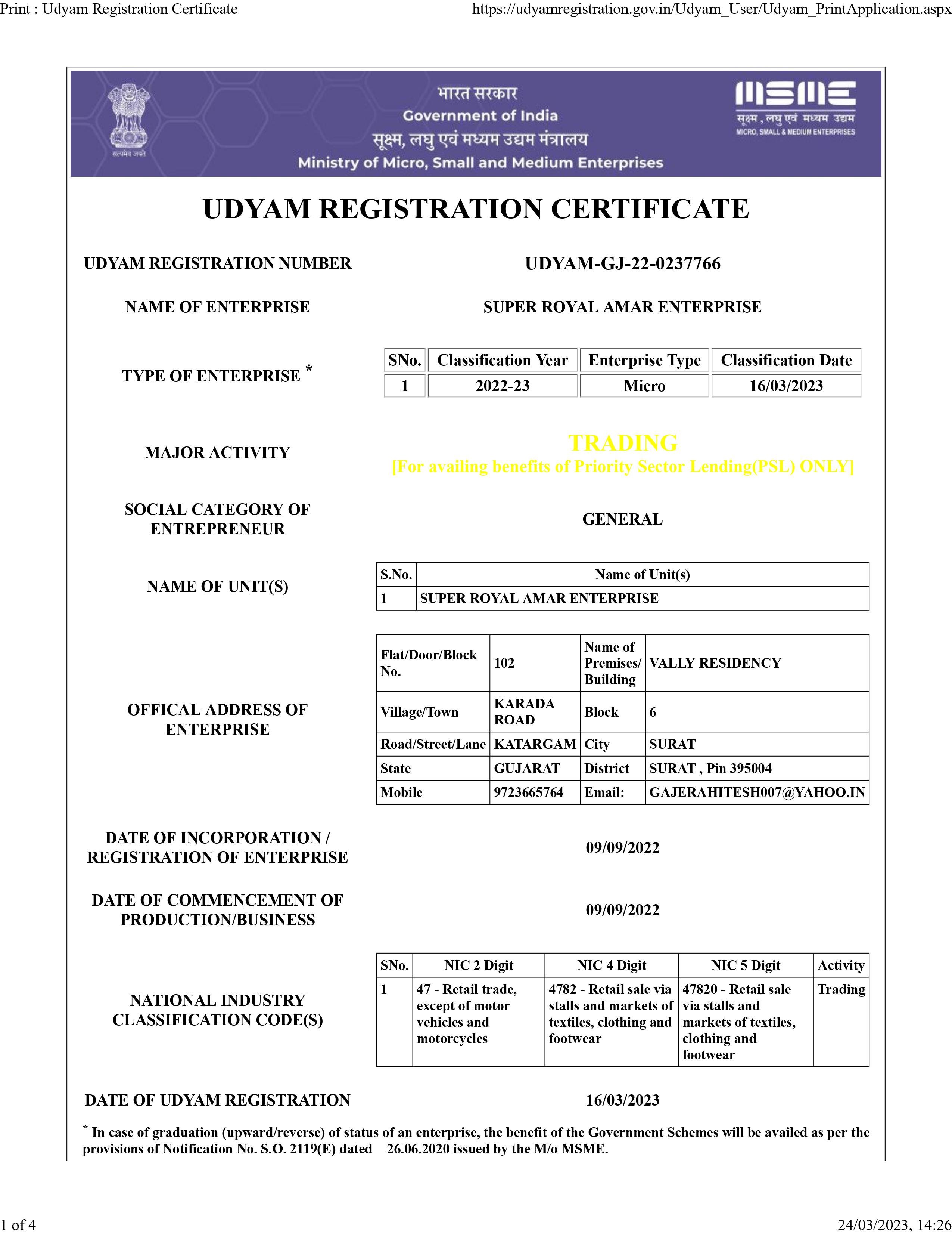 • Company Register Information: