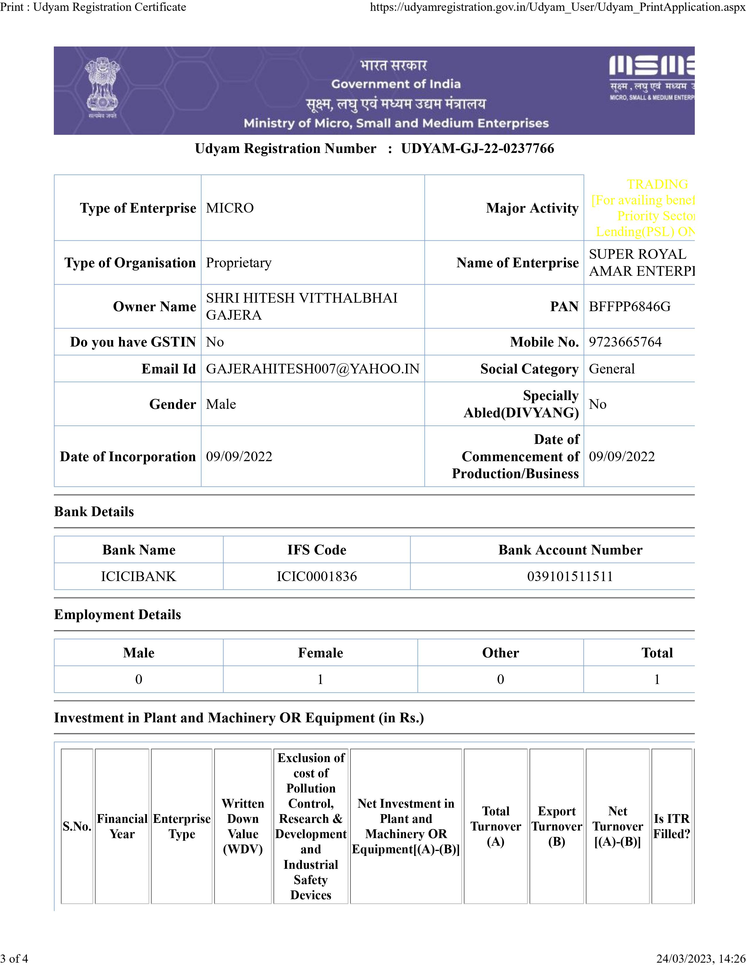 • Company Register Information: